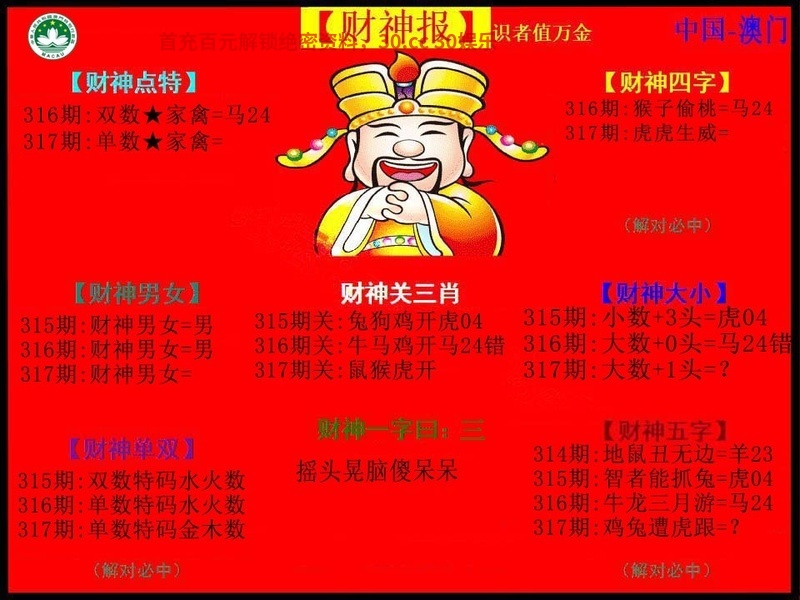 | 317期:大小中特【大大】开:鼠18错 | |||